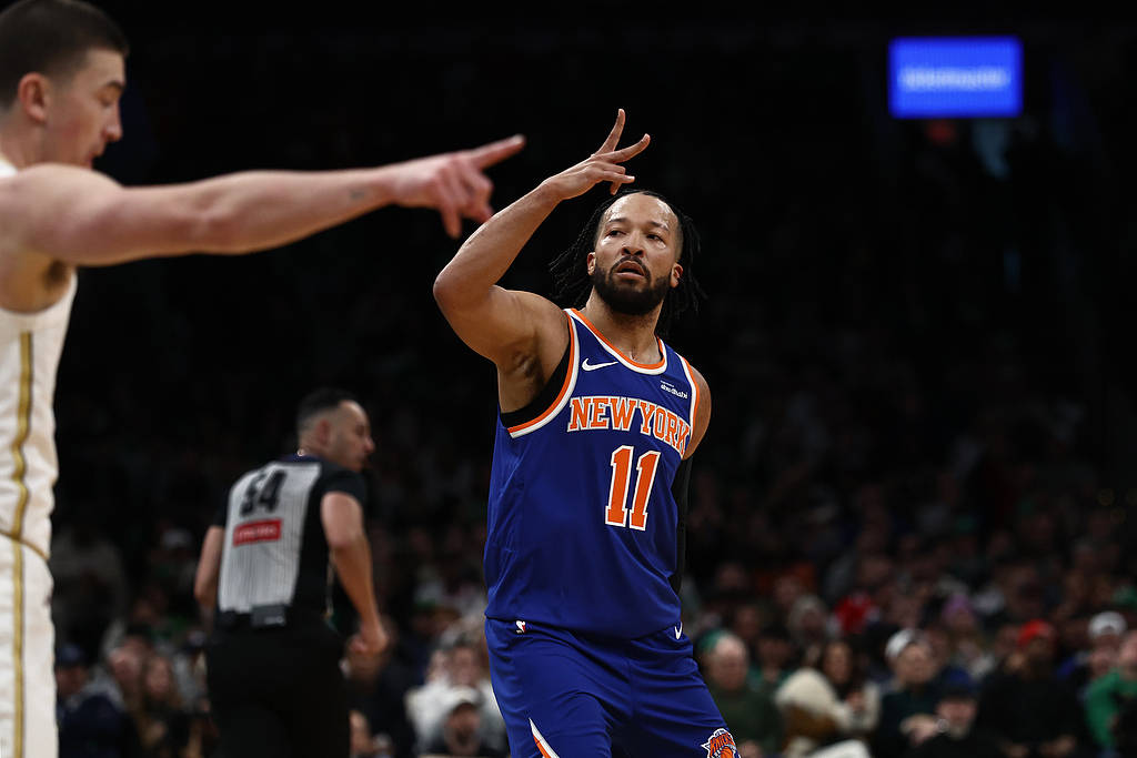 尼克斯队首发:杰伦-布伦森、约什-哈特、米卡尔-布里奇斯、卡尔-安东尼-唐斯、兰德里-沙梅特